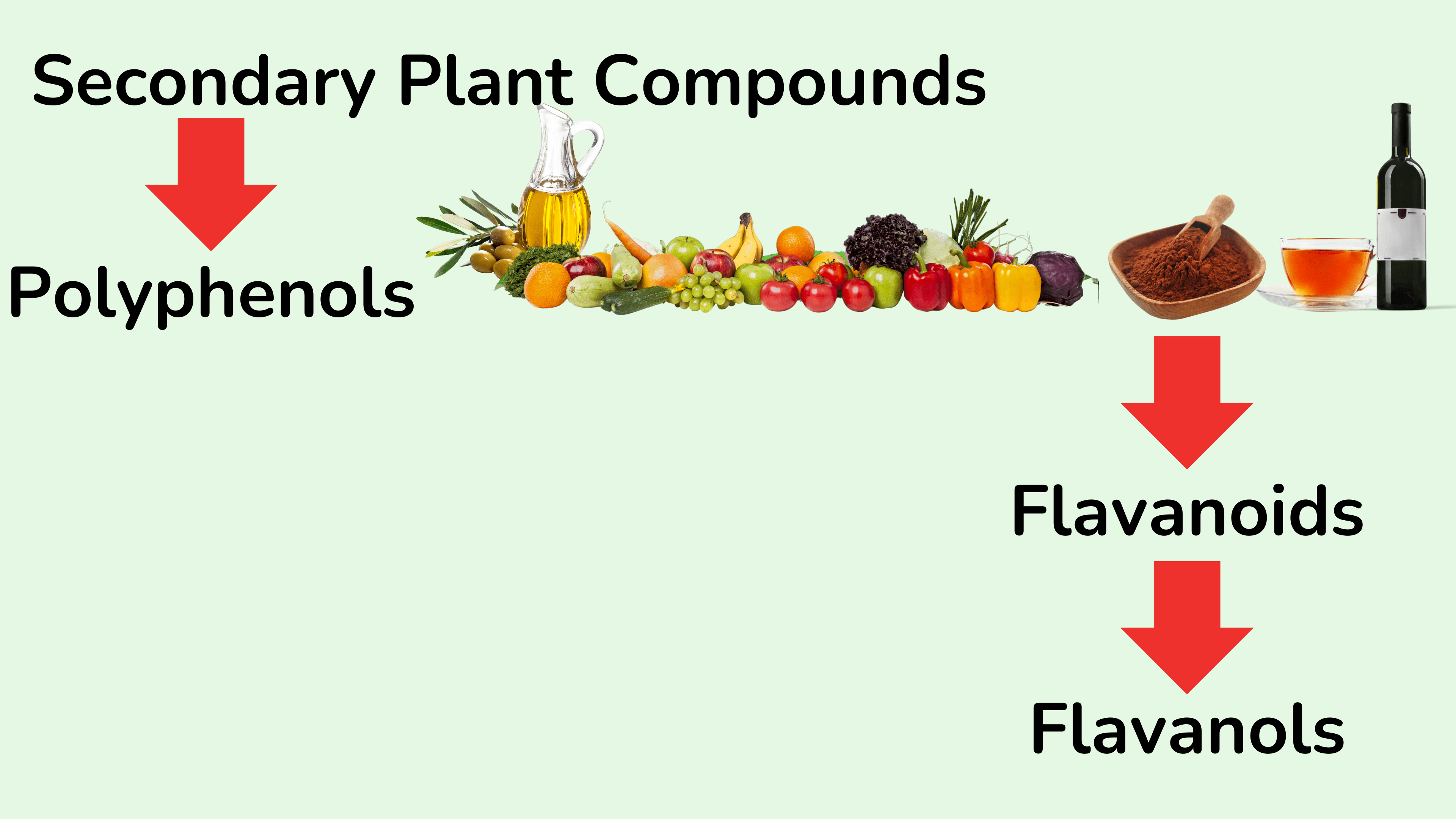 这些次生植物化合物中有一类特殊的化合物,即酚类,其中包括多酚。植物次生化合物还有很多,但现在先来关注一下多酚。你可能听说过这些化合物。在许多食物中都发现了这些多酚,比如橄榄油、水果和蔬菜、红茶和绿茶、红酒,还有……可可豆。同样,多酚有很多不同的种类,但可可中特别有趣的是黄酮类化合物,在黄酮类化合物中,可可中含有一些黄烷醇。许多研究人员认为,可可和黑巧克力具有抗糖尿病作用的原因可能是黄烷醇含量非常高。
